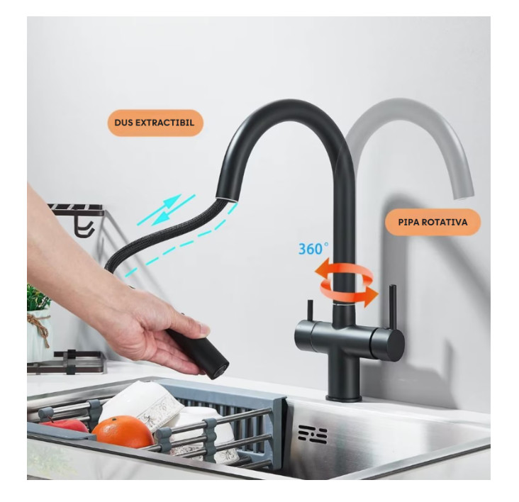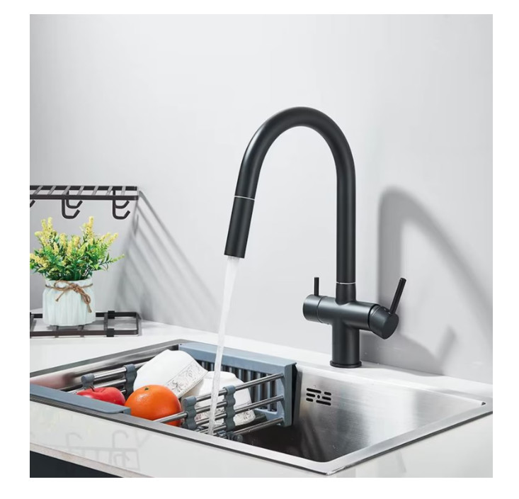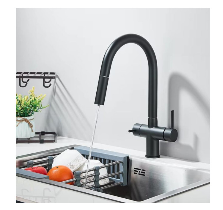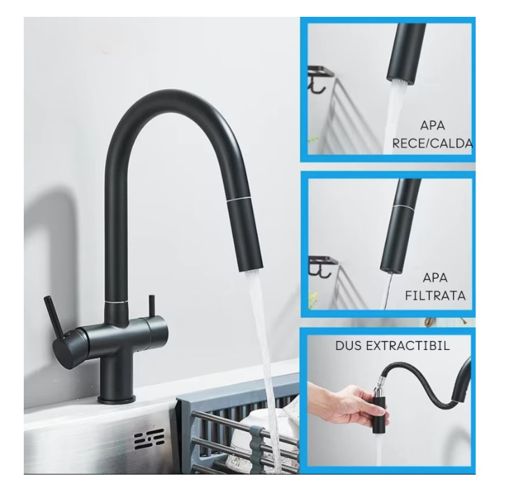 3 utas konyhai csaptelep kihúzható zuhanyfejjel és szűrt víz kifolyóval