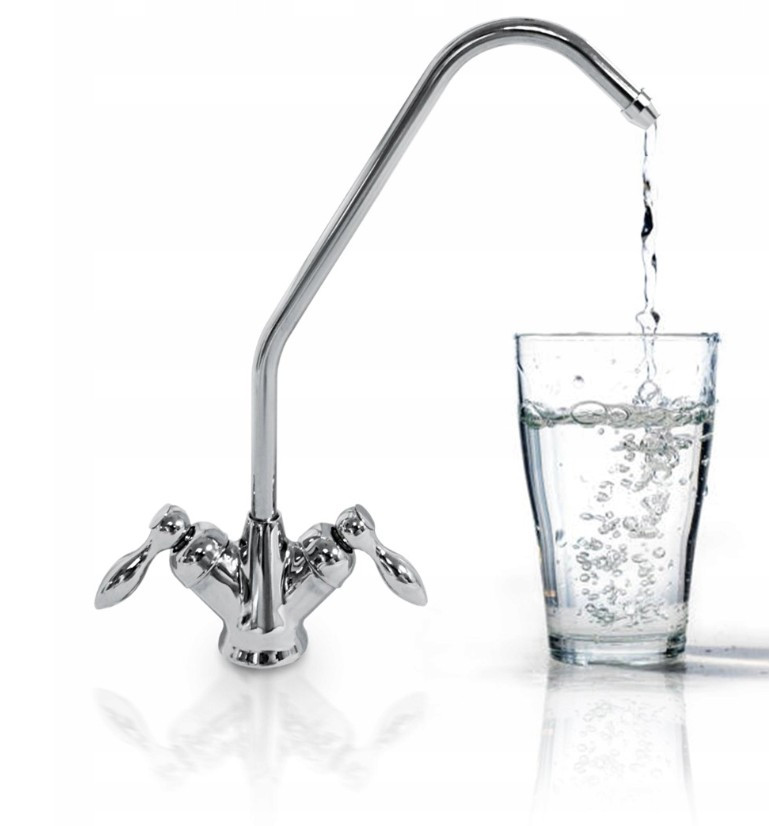 Formatervezett, pultra (a mosogatótálcába) szerelhető, kétutas, kerámiabetétes csaptelep RO (fordított ozmózis készülék) vagy más pult alá felszerelt víztisztítókhoz.