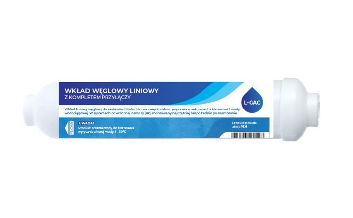 Kókuszdióhéjból származó aktív szénnel töltve. Utószénszűrő az Ro rendszerben.